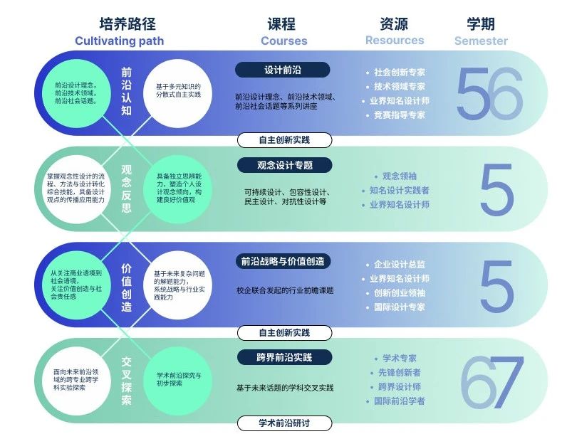 推出的新一轮教学改革的试点项目,在专业深耕于学科融合的基础上,进一步聚焦四大前瞻核心能力:前沿认知力、观念反思力、前瞻创新力与交叉探索力,培养具备前沿探索精神与多元创新能力、并保持独立思辨能力的未来型设计创新人才。