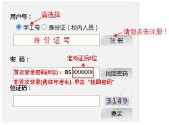 财务处”,在“业务办理”中选“学生缴费”。考生账号已开通,切勿自行注册。复试收费标准:80元/生(仅申请考核考生,硕博连读考生无须缴费)。用户号选择“学工号”,输入正确的身份证号。缴费系统初始密码(8位)为大写字母“BS”加准考证编号后6位(准考证查看网址://yzgmis.yinghuamanga.com/zsgl/bswb/login.aspx),如“BS123456”。非首次登录缴费系统的考生(含往年报考考生及误注册考生)使用“找回密码”,登录并缴费。