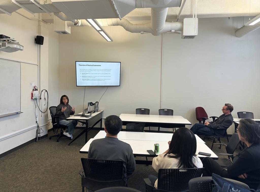 随后,来自加利福尼亚大学戴维斯分校Damien Mitchell、Satomi Zukeran、Dongqi Mo等五位研究生也依次介绍了自己目前进行的设计和艺术研究工作。其涉及多个领域,包括服饰设计、建筑设计、生成式数字媒体研究等等,双方的研究成果和学术探索引发了现场的热烈讨论和交流。