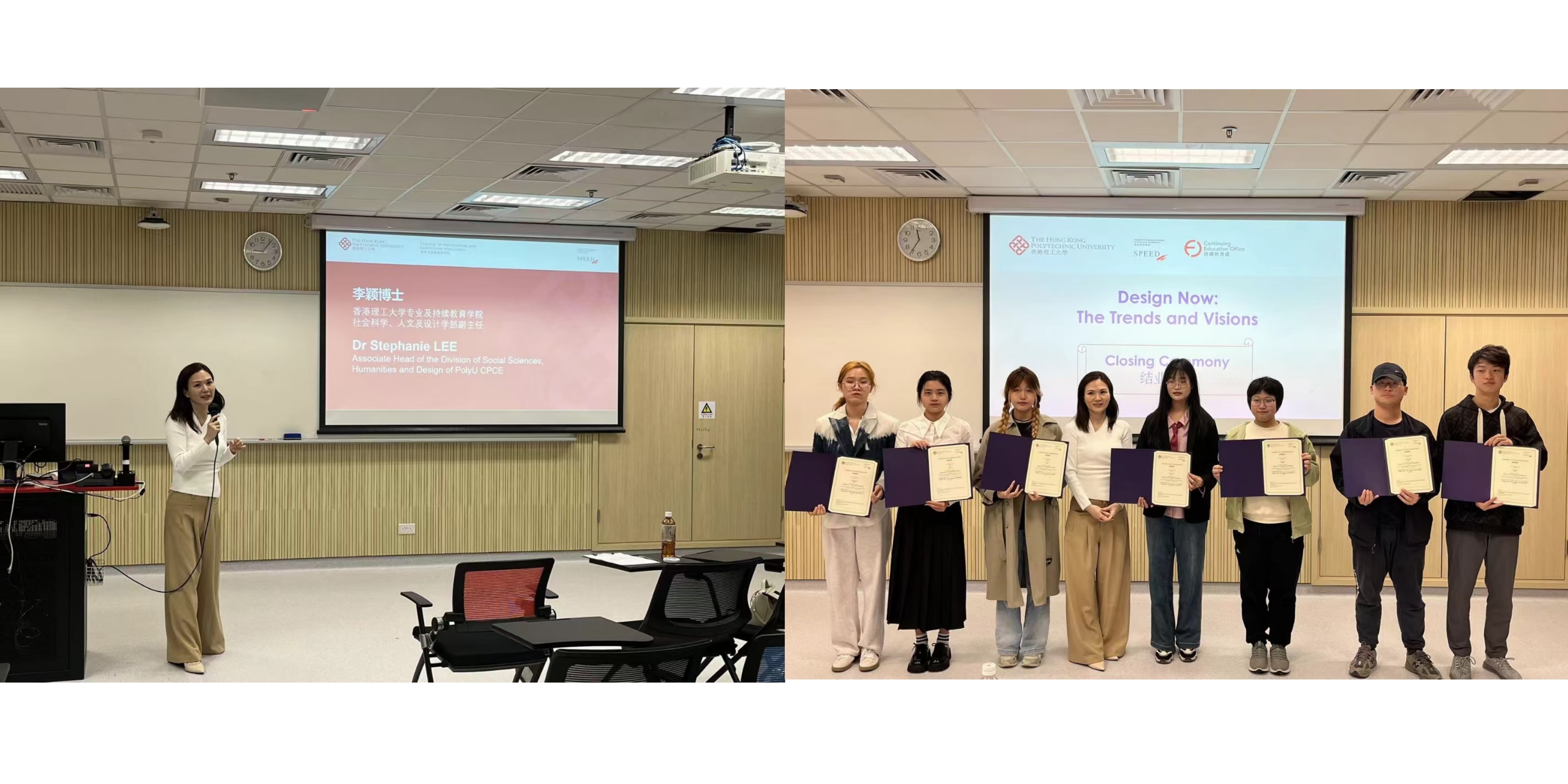 在香港理工大学访学期间,同学们走进课堂,认真学习前沿设计理念,并就各自设计主题开展调研,通过团队合作进行课程设计,运用英文做结业汇报展示。