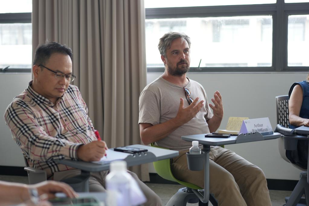 国际交流分管副院长周林、院长助理梁峭、全国轻工业工业设计重点实验室主任周敏宁、产品设计系副教授钱晓波、肖东娟,环境设计系教师李孟琦、国际交流秘书刘荀以及活动联系人陆一晨等出席座谈会。座谈会由体验设计前沿方法与技术学科创新引智基地副主任陈祥洁主持。