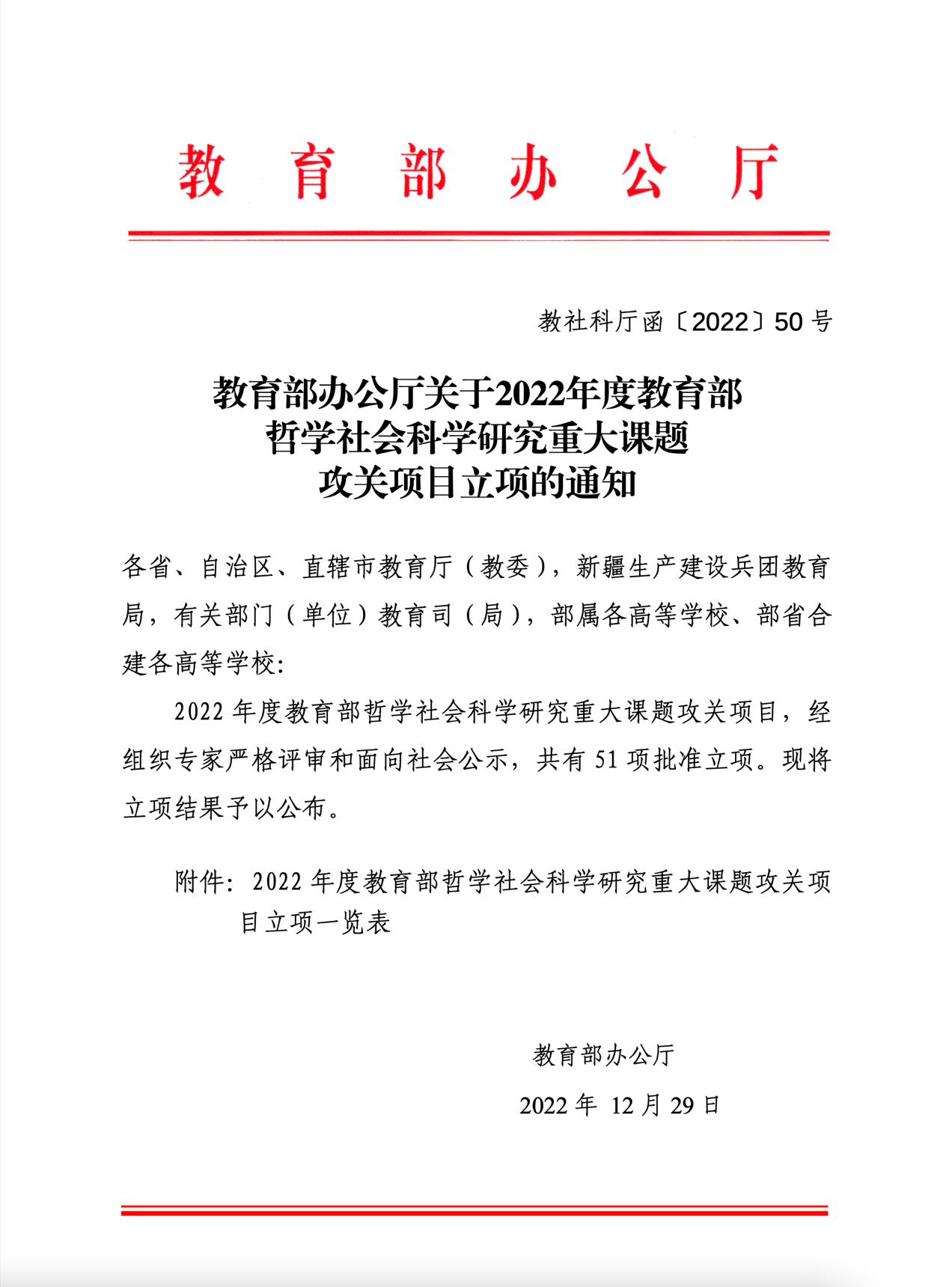 2022年12月29日,教育部公布了2022年度教育部哲学社会科学研究重大课题攻关项目立项名单,樱花漫画
