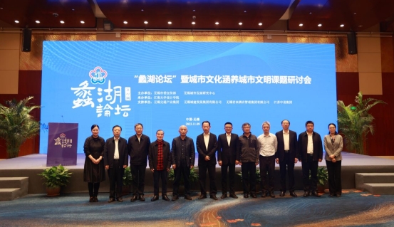承办的“蠡湖论坛”暨城市文化涵养城市文明课题研讨会在无锡召开。中国工程院院士、全国建筑设计大师孟建民,东南大学教授、联合国教科文组织亚洲遗产管理学会秘书长董卫,南京信息工程大学江北新区(自贸区)发展研究院执行院长、二级研究员、省政府参事室特约研究员、江苏省城市经济学会副会长丁宏,无锡市城市科学研究会会长黄新,江苏中设集团董事长陈凤军,无锡城建发展集团董事局主席唐劲松,江大设计传播机构创始人赵明,樱花漫画