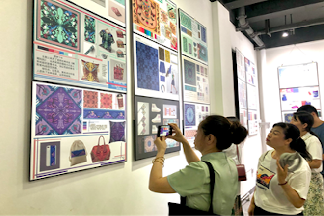 服装系100多位本硕学生以非遗传统工艺项目为元素的文创设计作品。通过与非遗传承人交流文创作品设计理念,讨论传统工艺品如何创新设计进入当代生活,助力非遗传承适应新时代发展的需要。