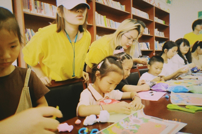 在艺术课堂上,志愿者们指导当地留守儿童利用超轻黏土、彩纸等物品进行手工创作,既为乡村孩童普及基础美术教育,又使其亲手体会到创作的乐趣。在团队成员精心指导下,孩子创造出了一幅又一幅美丽的立体画卷,脸上也浮现着朝气蓬勃的笑容。