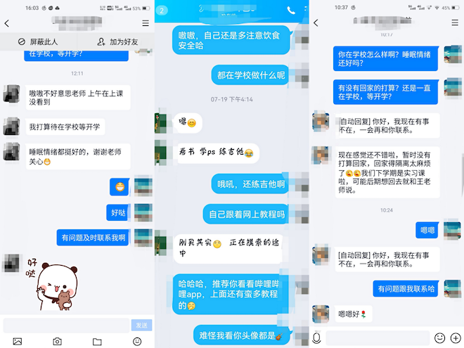 同学们对学院老师在炎炎夏日送来的安全提醒和关心问候表示感谢,纷纷承诺一定会严格遵守防疫相关规定,互相关爱留校学生,坚守抗疫不松懈,互帮互助共进退。