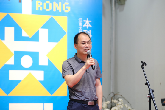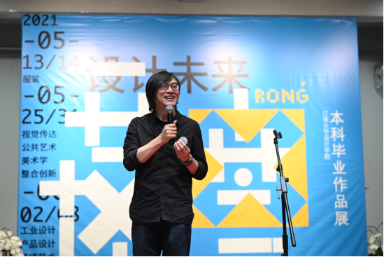 开始学习的过往经历,依然觉得当年本科毕业设计时的场景历历在目,并对在座各位老教师、前辈以及学长的指导和关心表示衷心的感谢。随后,他为毕业班同学们带来寄语:毕业作品展不仅是设计成果的一次呈现,更是大家人生中的一块重要基石,希望大家在设计创新实践中积极进取,创造出属于自己的不凡人生。