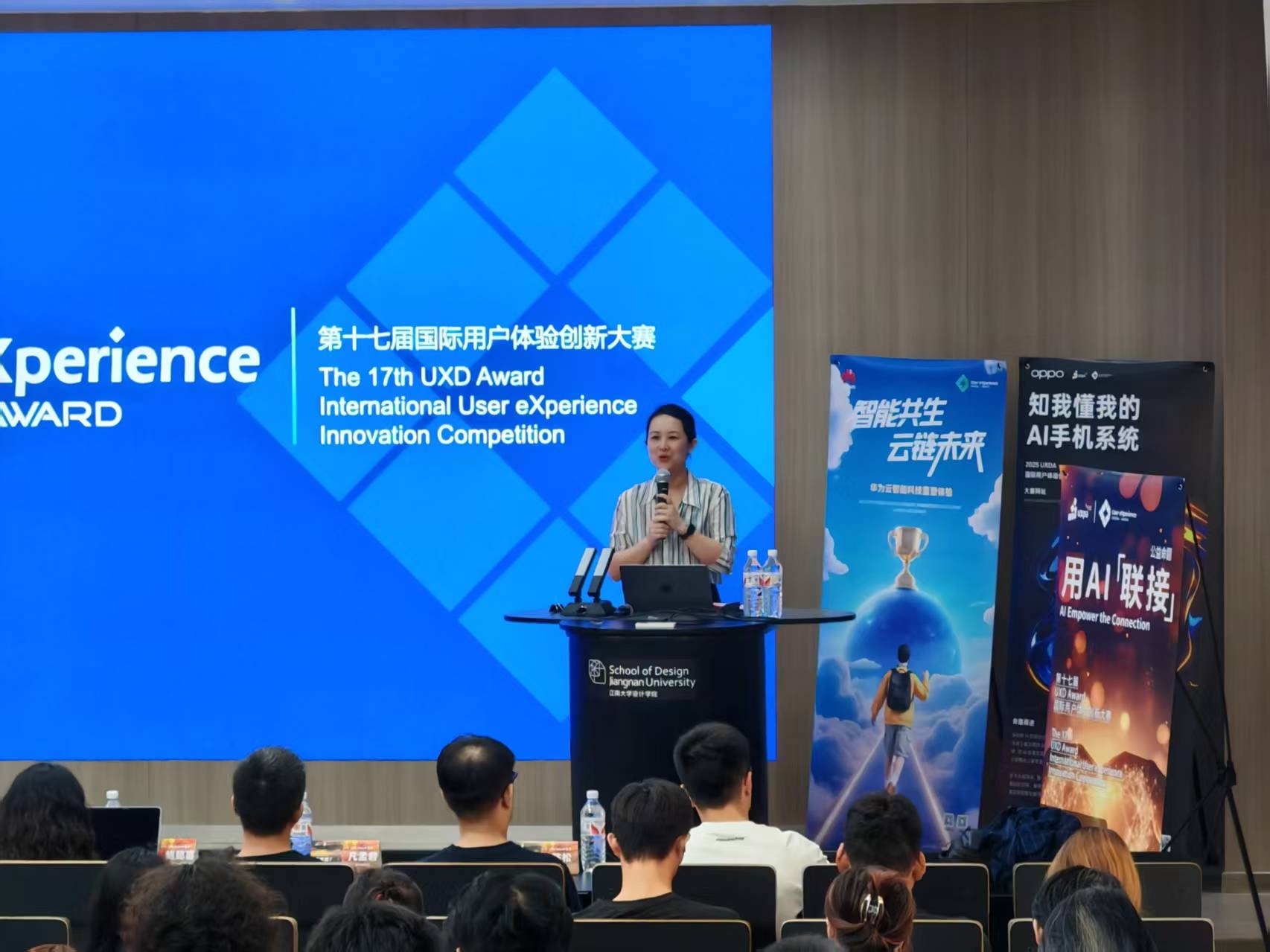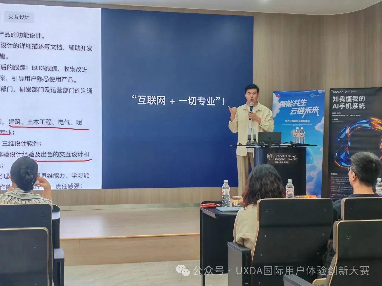 一楼报告厅隆重举办。UXDA大赛组委会专家与企业资深行家汇聚,深度剖析大赛全景,精准解读企业命题核心,并依托丰富实战案例分享经验,为设计学子呈上了一场用户体验知识盛宴。UXPA中国华东区理事魏欣,OPPO设计主管凡孟君、 UX设计师陈松,华为云用户体验设计专家许沁,樱花漫画