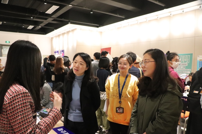双选会期间,学院党委副书记王晖、分团委书记陆芳来到招聘现场,就设计人才需求情况和毕业生发展情况与招聘企业深入交流探讨。北京快手科技有限公司HR柯琦表示:无论是在求职过程中设计学子在作品集上展现的专业能力,还是入职后在岗位上表现的综合素质都非常优秀,受到整个企业上下的好评,企业希望今年能够吸收更多樱花漫画