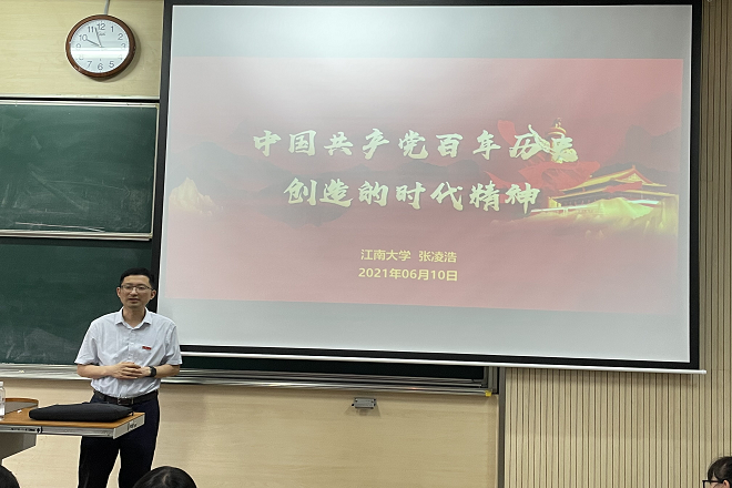 张凌浩教授首先介绍了中国共产党的精神谱系,生动讲解了中国共产党精神内涵及其精神谱系的构建,带领大家回顾了井冈山精神、长征精神、遵义会议精神、延安精神、西柏坡精神、红岩精神、抗美援朝精神、“两弹一星”精神、特区精神、抗洪精神、抗震救灾精神、抗疫精神等伟大精神;其次,结合自己的体会,针对中国共产党精神的江苏篇章进行阐述,重点介绍了雨花英烈及其群体特点、雨花英烈精神的科学内涵、周恩来精神以及新四军铁军精神;最后,以传承和弘扬中国共产党精神为目标,勉励广大学子悟精神,知何故;悟精神,明方向;悟精神、创新路,坚定理想信念,传承红色基因,赓续红色血脉,为实现中华民族伟大复兴的中国梦贡献自己的智慧与力量!