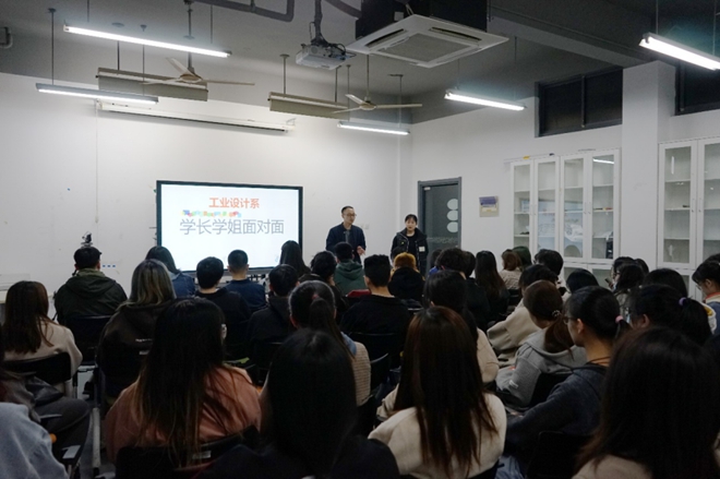 工业设计系举行了“学长学姐面对面”活动。本次活动由系主任梁峭和副主任周敏宁发起并组织,共邀请了9位大四优秀同学参加,涵盖保研、出国、考研及工作等方向。