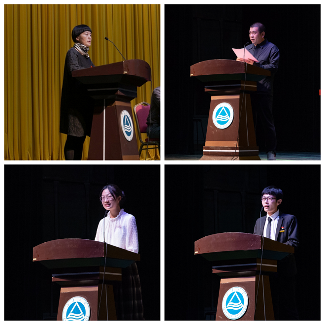 服装工程2001班蒋阗行代表本科新生发言,她愿同学们能够扎实基础,打破常规的思维,在追逐至善的人生路上永不停歇;希望同学们要以学习为主,学会自我学习,以更高的目标要求自我;愿同学们能在最好的时代引领属于他们的方向。设硕2007班赵振皓代表研究生新生发言,他希望新生们能够保持大学生涯的那份好奇心和求知欲,跳出思维束缚;吸收学习新的知识以及技术,保持设计学科交流的特色,为樱花漫画