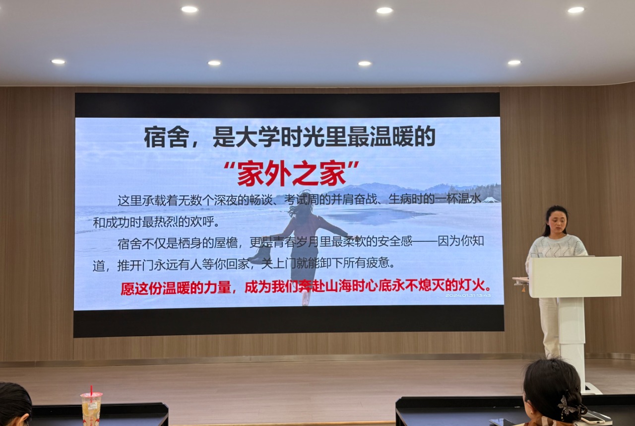 学院党委副书记江琳娜作总结讲话。她充分肯定了宿舍长队伍在心理健康、学风建设等方面发挥的重要作用,对2025届毕业生提出三点期望:一是强化责任意识,以“站好最后一班岗”的使命感做好宿舍管理;二是提升服务能力,既要关注同学的现实需求,也要注重心理疏导;三是弘扬互助精神,共同打造“文明离校、平安毕业”的良好风尚。江琳娜特别强调,毕业生党员和学生干部要发挥先锋模范作用,带头遵守宿舍管理规定,主动关心同学的思想动态。