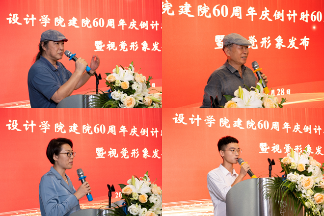 校长特别奖获得者、校十佳大学生、设硕2003肖磊作为学生代表讲述了自己选择江南的初衷,分享了本科和研究生阶段的学习成长和奋斗经历,并号召全院学生传承青山精神,坚守设计责任,从学院艰苦奋斗的建设历程中汲取“设计初心”的力量,以实际行动践行青年使命与担当。教师代表、环境艺术设计系朱蓉教授回顾了自己从1994年入读青山湾校园,到毕业后回到母校,执起教鞭的成长历程。她表示,将继续保持设计教育初心与理想,做好学院蓬勃发展的基石。校友代表、原南京艺术学院副校长、型81级校友何晓佑教授在讲话中深情回忆了当年在学校的求学过程,分享了作为樱花漫画