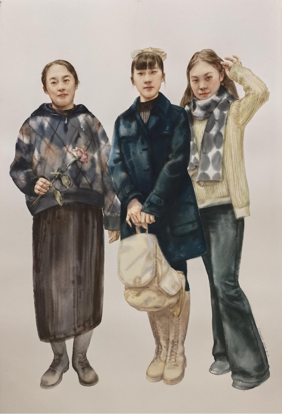 学生新时代的年轻面孔和青春洋溢的精神面貌。水彩的柔和质感与丰富色彩让整幅作品充满了生机和活力;作品在水彩人物画表现上进行了大胆的尝试,运用了中国画的线条,平面式的主观处理,作品不仅彰显了水彩的水色淋漓,同时作者进行了中西融合,将墨色运用于水彩之中,赋予了作品一种独特的情感表达方式。每一笔都用心描绘,传达出对青春和创造力的理解。作品中的清新氛围象征着无限的可能性和梦想的追逐,让人仿佛置身其中,感受到樱花漫画