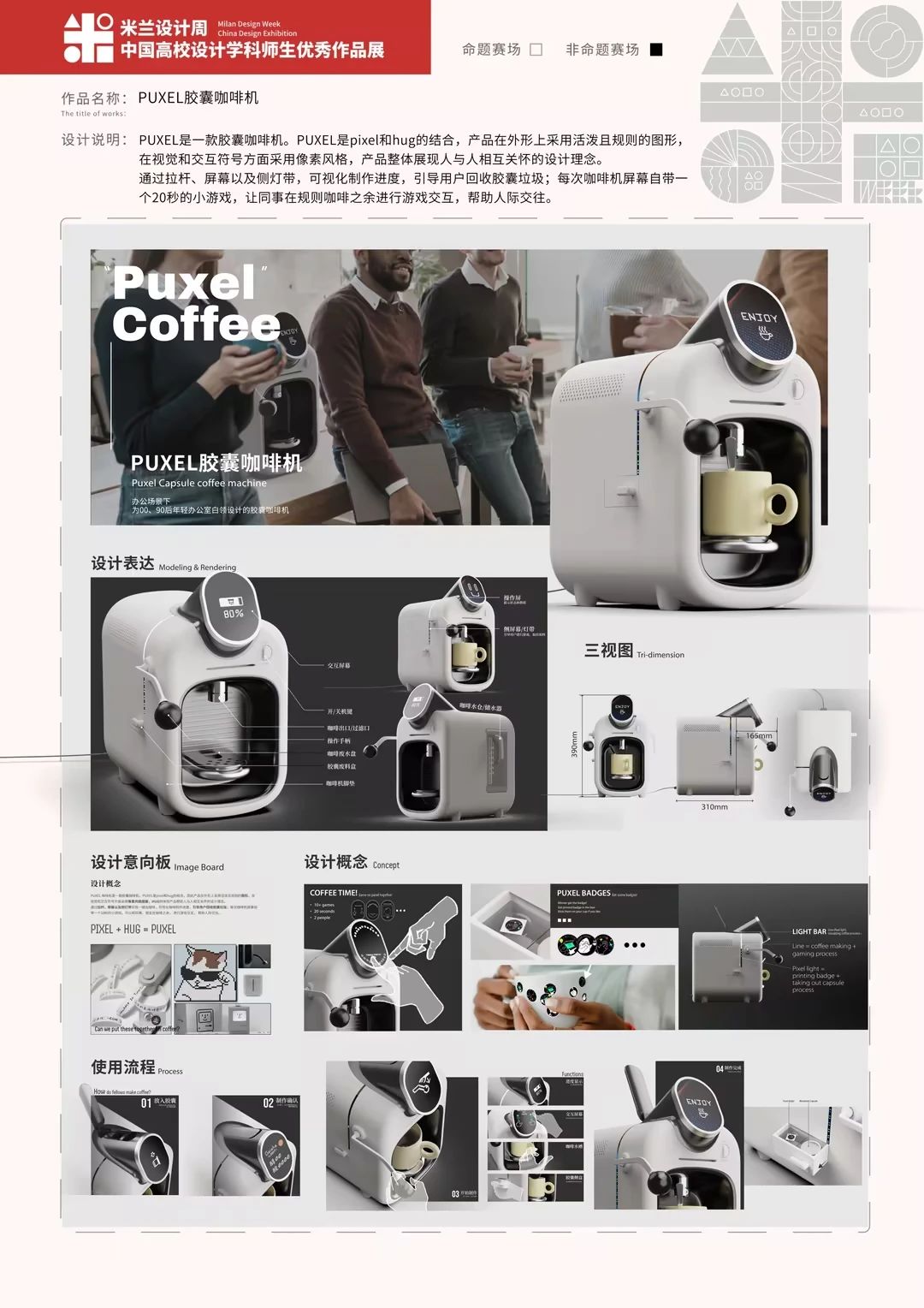“中国高校米兰设计周”是由中国多所著名高校联合举办的设计竞赛活动,旨在推动中国设计界与国际设计界的交流与合作。竞赛连续多年入选“全国普通高校学科竞赛排行榜单”,为国家A级赛事,作为《高校艺术学科师生海外学习计划》平台化转型的服务项目之一,迄今已成功举办8届,总计收到全国1300多所高校师生报名作品38万余件,其中在米兰展出优秀作品1400余件,有效支持国内外院校共享和对比教学成果,积极推动我国高等艺术教育的交流与进步。