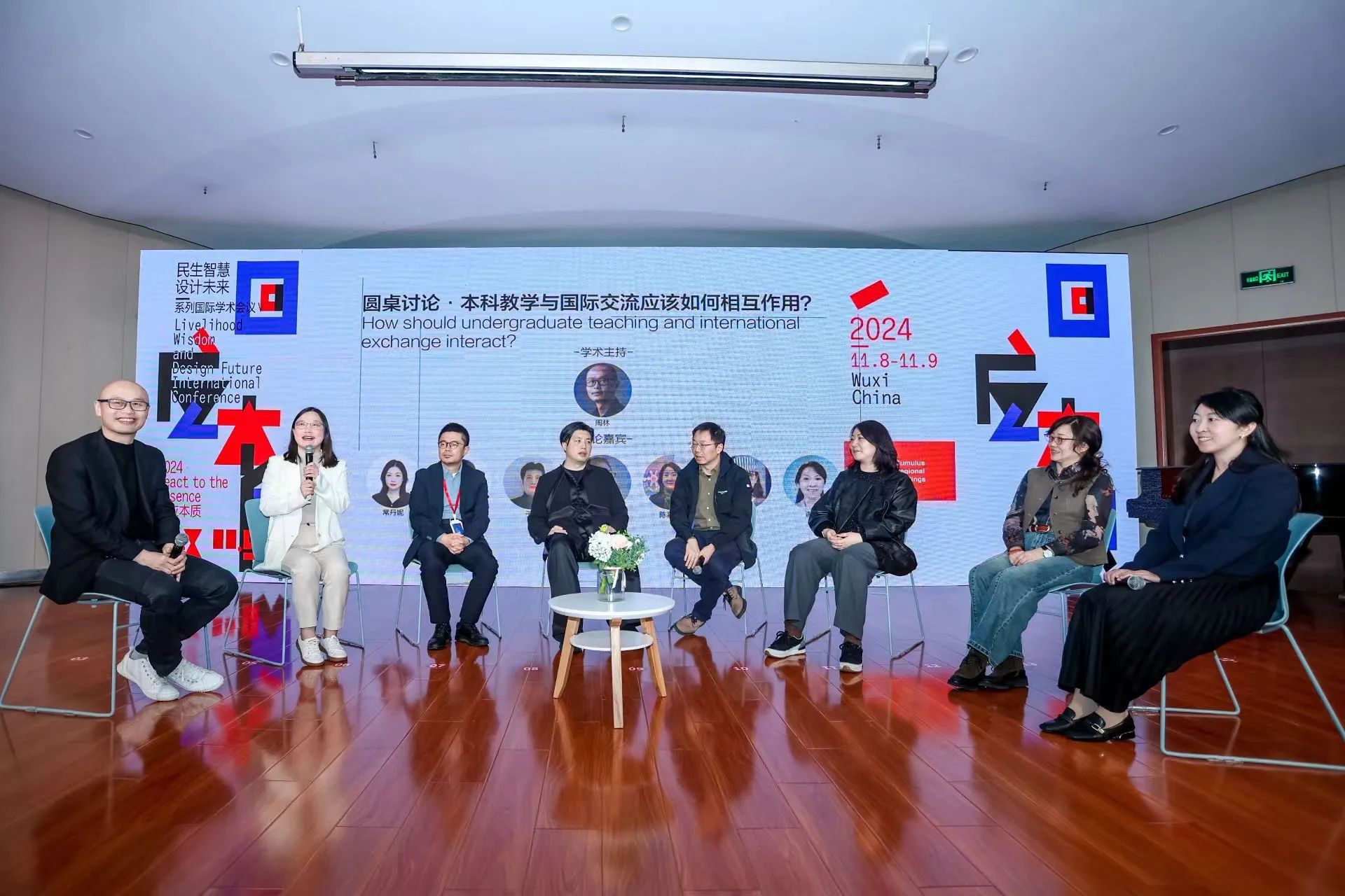 圆桌讨论1以“面向未来的设计教育国际化和全球化”为议题,由巩淼森副教授主持,Lorenzo Imbesi主席、Christian Guellerin 教授、Kun Pyo LEE教授、Gianni Corino教授、Mike Phillips教授、胡伟峰教授、钟贞副教授共同参与。与会嘉宾对设计教育的现状与挑战,跨学科融合的重要性、技术进步的影响、校企合作中的实践机会、培养可持续发展意识等问题进行深入探讨。讨论强调了设计教育需要适应快速变化的全球环境,通过跨学科合作、技术整合、实践经验和国际视野的培养,为学生提供全面的教育,以培养能够适应未来挑战的设计人才。