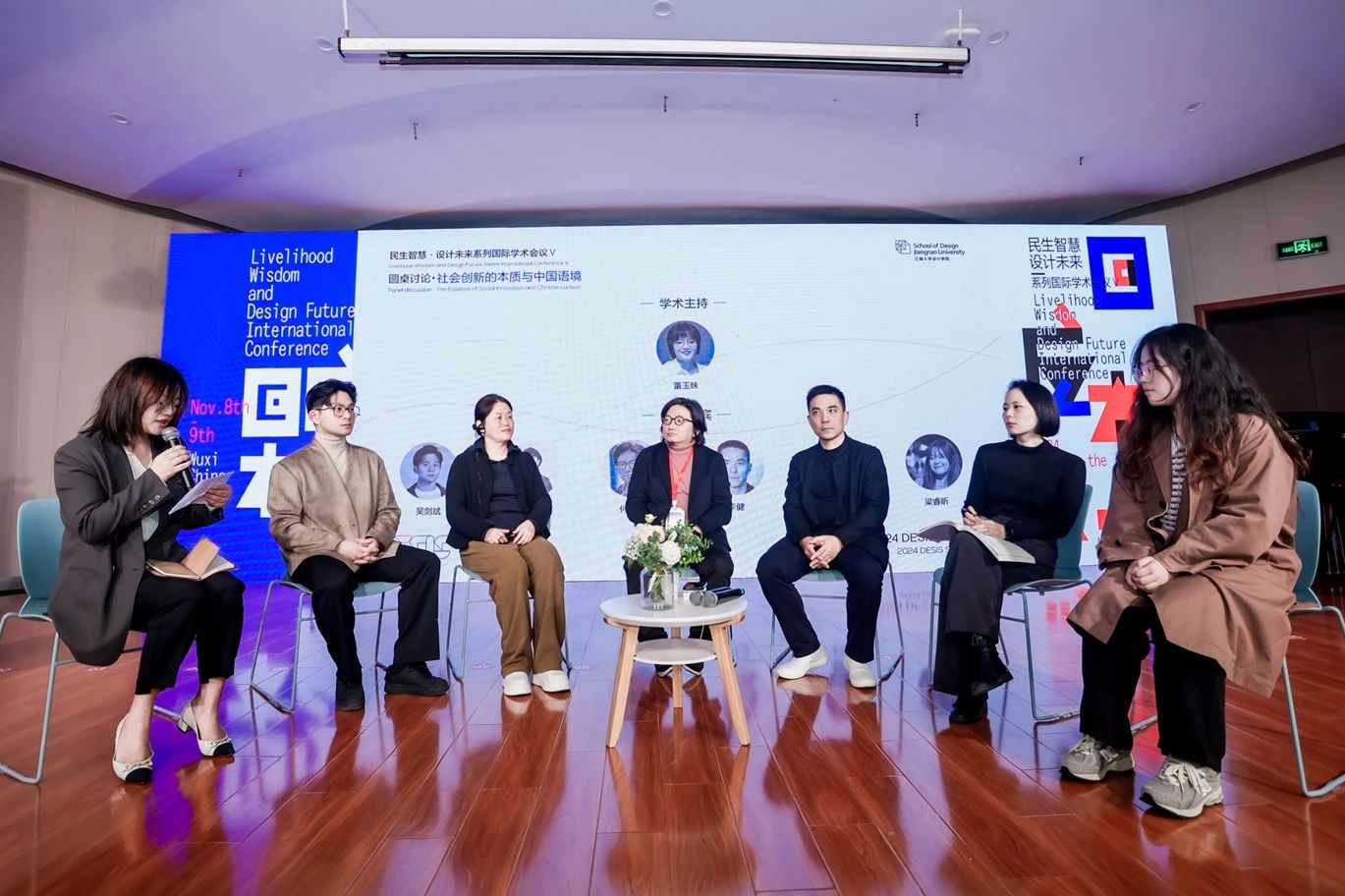 张雳老师和吴剑斌博士作为嘉宾参与讨论,并分别通过三个关键词概括了对社会创新的理解。何颂飞教授从“个体价值”“持续活力”及“多元文化”角度,呼吁重视个体的作用和尊重多元文化;李健副教授从“艺术的作用”“价值的转化”和“持续的应变”出发,提出设计师需在社会创新中全程参与,结合艺术性和创新思维;朱明洁博士以“协作”“鲜活的社区”和“积极的转化”为关键词,强调设计师在社区创新中的重要角色;梁睿昕提出“有意义”“有意思”和“自主性”,认为社会创新应从大众文化和机制的多样性中获得动力;张雳老师关注“社群”“在地”和“关系”,并指出公益项目的本土化和持久性;吴剑斌博士结合自己的研究方向,提出“关系构建”“协同共创”和“模式迭代”,强调设计在当下语境中的重要性。此次讨论全面展示了社会创新在中国实践中的复杂性和丰富性。