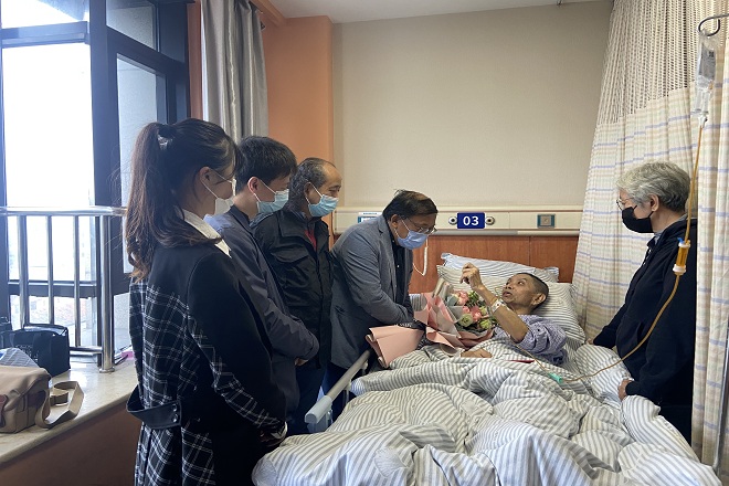 探望过程中,服装专业金倩同学代表全院学生向许恩源教授献花,并表达了将以许恩源教授等学院前辈们为学习楷模,在学术道路上砥砺前行,在使命责任上矢志奋斗。