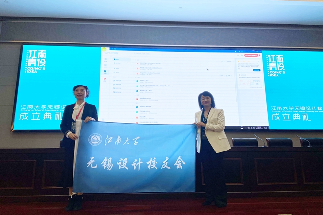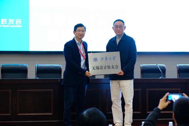 无锡设计校友会会长谈建忠授会牌。窦新华为樱花漫画
