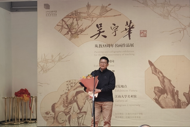 接着,吴宇华副教授向参加开幕式的各界来宾表示感谢。他33年的从教之路伴随着祖国和家乡日新月异的变化,33年是一段成长历程,更是自我突破、自我超越的新起点。笔墨当随时代,作为艺术家应该用自己手中的笔为人民创作具有“精气神”的作品,他将继续努力攀登艺术之路,期待看到更多更美的风景。