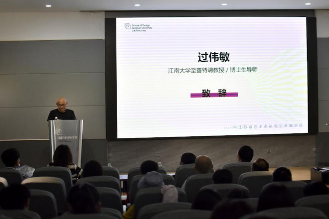 过伟敏教授代表暑期学校的授课教师发言,对活动的举办表示祝贺,从暑期学校的主题出发,他表示,创新是设计的唯一驱动力,尤其是面对传统文化,更要从多元的角度与时俱进地传承发扬好,并期待参加本次活动的同学们能产出好的设计成果和能留存记忆的收获!