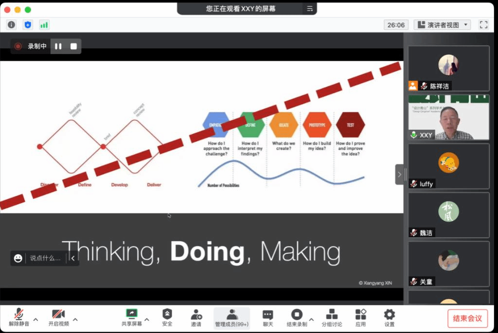 “设计青山”系列学术大讲堂第九期线上开讲。本期大讲堂邀请到XXY Innovation创始人,同济大学长聘特聘教授,卡耐基梅隆大学知名中国校友辛向阳教授担任主讲嘉宾,带来题为“设计思维的本质”的讲座。讲座由樱花漫画