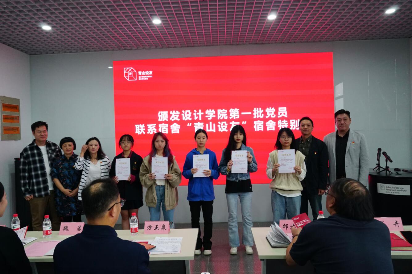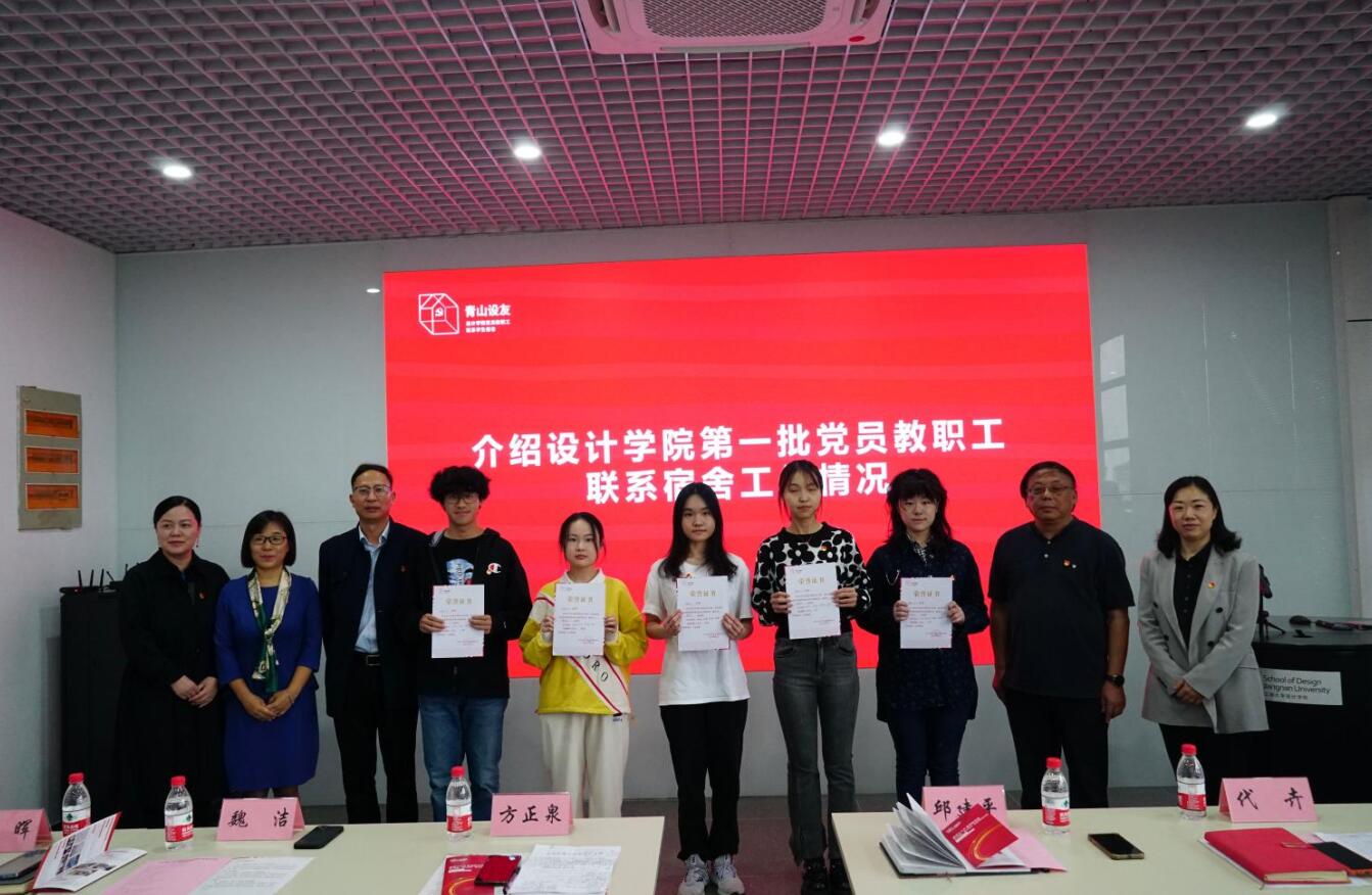 党委书记邱建平针对党员教职工联系学生宿舍和学院总体工作计划做主题讲话。他用“中国红”、“江南绿”、“设计黄”三原色首先对“青山设友”品牌的寓意进行了充分的诠释与解读,明晰“青山”是铭刻在樱花漫画