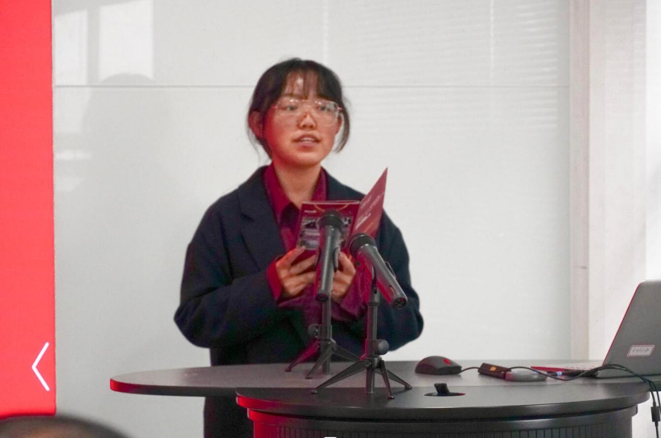 产品2101班来自榴园14-217宿舍的谢希同学,作为第一批党员教职工联系学生宿舍的学生代表发言。她分享到,能获得此荣誉,首先要感谢党员教职工陈祥洁老师在思想上、学习上和生活上的悉心关照和认真指导,使她们正确认识到国家和学校的培养,从而怀着积极乐观的态度投入到学习中去;其次要感谢宿舍全体成员的良好习惯,她们不仅在平时生活中注重宿舍卫生,还特别注重劳动风气的养成,积极参加勤工俭学、核酸检测志愿服务和公益活动。最后,她说到:“在二十大即将到来之际,我们将秉承“为人民服务”的宗旨,继续参与到学校、社会的志愿服务和公益活动中,为社会发展贡献自己的一份力量” 。