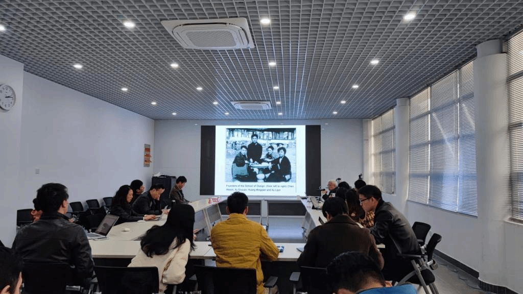 的发展过程,回顾了学院发展历史中的重大事件以及具有突出贡献的教师们的事迹。他提到获得国家级教学成果奖的“四结合”(艺工结合、理论实践结合、教学、科研和社会服务结合、课内和课外结合等)的教学体系构建。还提到“凝练学科方向、汇聚创新团队、构筑学科基地”等坚持走特色发展“有所为、有所不为”的学科建设思路,讲座过程中大家不时与张福昌教授互动探讨,共同思考设计学科的未来发展。