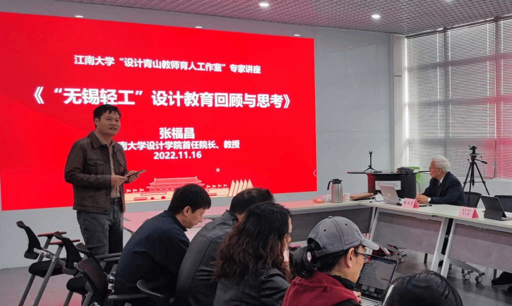 首任院长张福昌教授开展题为《“无锡轻工”设计教育回顾与思考》的专题讲座,该讲座由工业设计系党支部书记胡伟峰教授主持。学院党委书记邱建平,魏洁院长、曹鸣副院长、工业设计系党支部党员教师和系部教师代表以及交互设计党支部的学生代表们认真听了讲座并和张福昌教授进行互动交流。
