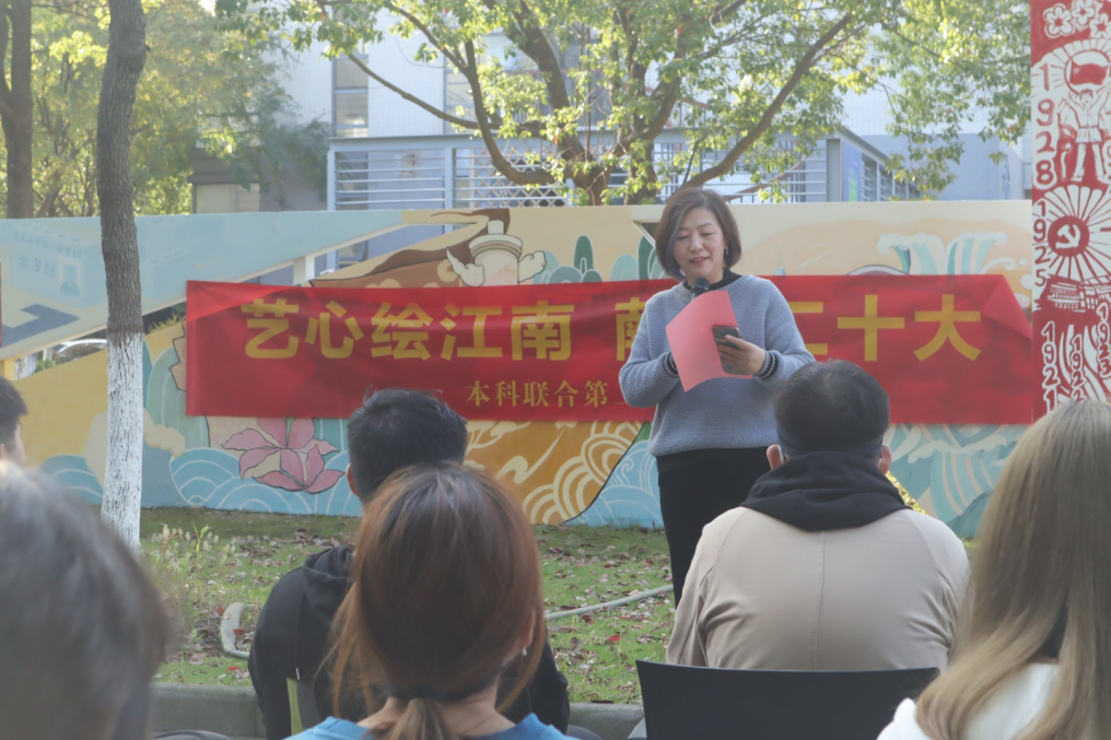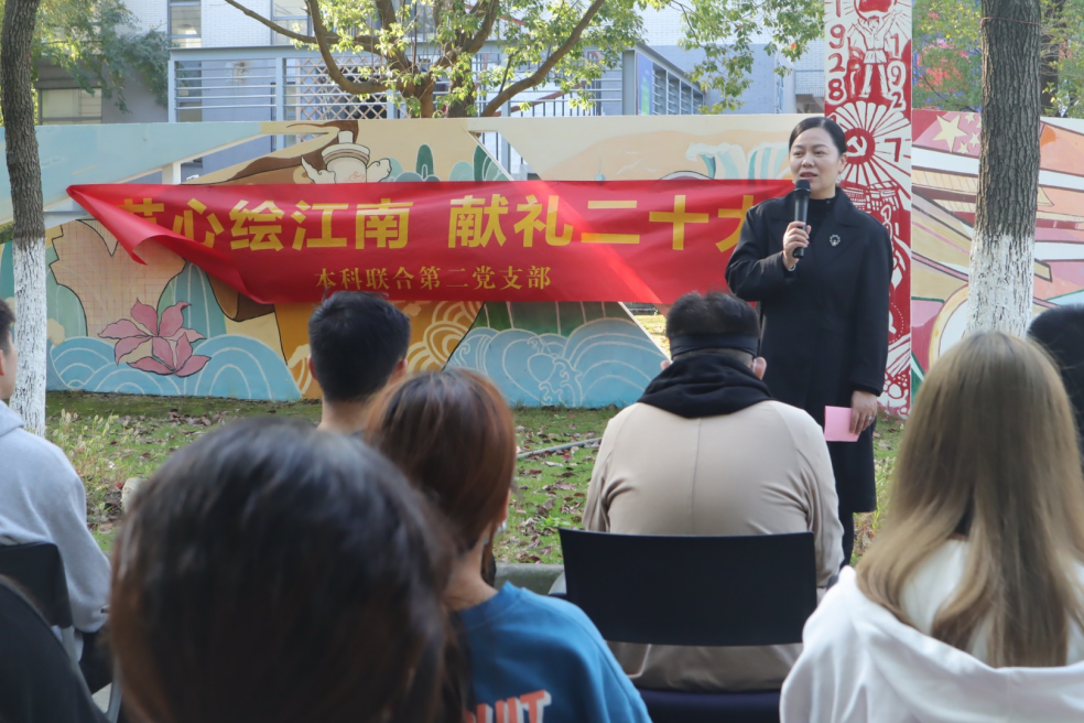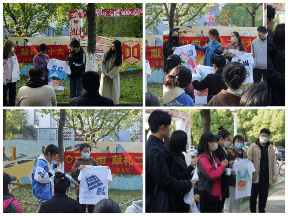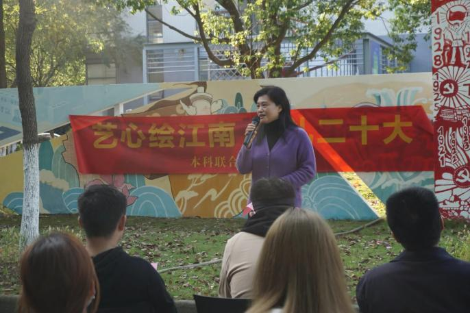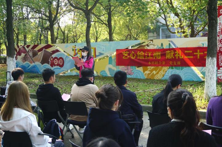 崔华春老师表示本次“艺心绘江南,献礼二十大”活动十分有意义,设计学子运用自己的专业力量“献礼二十大”,担当时代责任、勇于砥砺前行。吴祐欣老师希望在座的支部成员能够认真学习党的二十大精神,强化思想引领,强化担当作为。以理论上的成熟保证政治上的坚定,促进专业综合素质提高保证好学习工作的开展,成为国家和人民所期盼的有志青年。谢翠林老师分享了自己的“10年经历”,希望同学们借党的“二十大”为学习契机,披荆斩棘,扬帆起航;在对历史的回顾中汲取前进的力量,以青春之名,礼赞二十大。