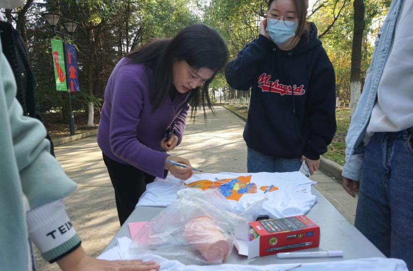 随后,涂鸦创作正式开始,同学们纷纷拿起手中的画笔,描绘着自己心中的“非凡十年”。行进在中华民族伟大复兴的历史征程上,中国人民书写下极不寻常、极不平凡的时代篇章。同学们分成5个小组分别从中国“高度、速度、精度、深度、力度、厚度、温度、跨度、密度、广度”10个方面进行绘制,嘉宾老师们进行现场绘画指导,充分展现出了设院同学的专业学习成果,更展现出新时代青年的风貌与朝气。