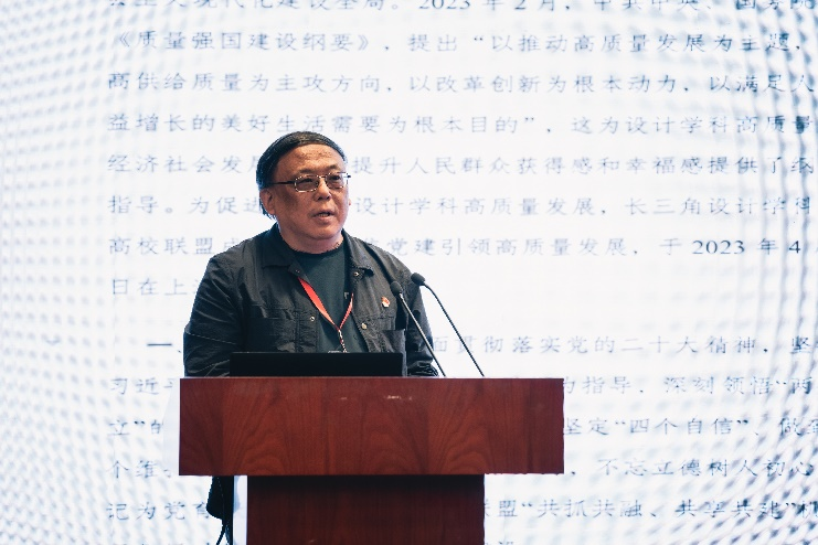 原党委书记邱建平代表联盟9所成员单位共同发布“长三角设计学科党建高校联盟发展倡议”。倡议从思想引领、战略谋划、设计赋能、传承创新、育人质量五个方面展开,强调依托新时代高校基层党组织建设,深化“共抓共融、共享共建”机制,推动学科建设可持续、高质量发展,聚力服务智能制造、乡村振兴、城市更新、数字智慧等,将科学研究和设计实践写在祖国大地上,推动优秀中华传统文化传承创新,探索引领行业高质量发展、有社会责任感的新型设计师与设计领导者的人才培养新模式,为党和国家事业发展培养全面发展、堪当民族复兴重任的时代新人。