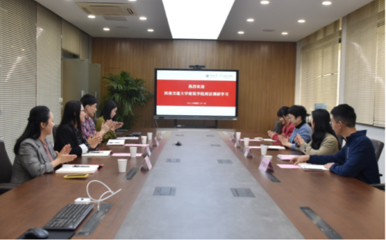 专职组织员陈祥洁老师首先对西南交通大学建筑学院学工队伍的来访表示热烈欢迎。交流会上,陈祥洁老师介绍了学院师资队伍、学科专业设置、科学研究与社会服务、国际交流合作,以及在党建引领业务成长方面取得的成绩和经验。重点结合探索构建家国情怀、江南风格的学科特色党建工作等方面谈了实践举措和工作成效。
