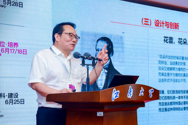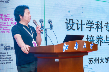 潘长学以《专业型设计高层次人才培养方法解读》为题进行了主旨报告,他指出:设计活动中,解决问题所需的知识横跨艺术学、工学、管理学,也关联人类学、社会学、文化学等领域,设计艺术学研究者往往要比美术研究者、音乐研究者要面临更多、更复杂的变数,有更多的限定性条件。设计专业型高级人才具有知识超越(灵感)和实践拓展的特性。