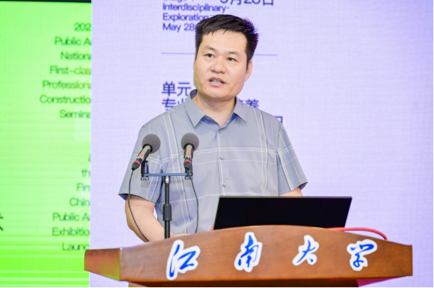 郑靖以《从造型美学到空间诗词——中国美术学院公共艺术专业建设实践》为题进行了主旨报告,分享了中国美术学院公共艺术专业建设的实践历程和发展变革。并且对中国美术学院公共艺术专业的教学内容和实践案例进行了详细介绍,分享了自己在公共艺术领域的创作实践,以及未来的研究和实践计划。