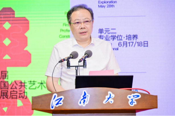 推动公共艺术国家一流专业建设和首届中国公共艺术大展做出的努力表示赞赏和肯定。他指出公共艺术从名称到内涵都充分体现了其跨学科特性,全国各高校也都是基于自身的经验和特色推动公共艺术专业建设,在公共艺术的国家一流专业建设过程中需要进行深入交流。因此他认为,本次的“公共艺术国家一流专业建设研讨会暨首届中国公共艺术大展启动”活动恰逢时机,希望能够通过本次活动深入探讨公共艺术专业的人才培养和评价体系的构建问题,促进中国公共艺术的高质量发展。
