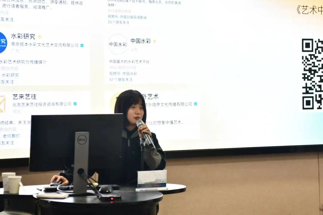 胡雨昕同学就自身经历向同学们提出了一些建议,可以参观画展、留意日常生活、做作业时与老师沟通、勇于尝试新事物、考取证书、大胆投稿发布作品等,达到拓宽视野和提高审美,积累作品素材和激发灵感,提早规划职业,明确个人的未来方向的目的;黄泽瀚同学建议每个人要选择适合自己的方向,并给我们分享了他的优秀作品集,还提醒要注意作品的落地性以及前期调研,同时要带问题去看展,投展要扬长避短,如投奖投环艺赛道方面还是单纯创意赛道。