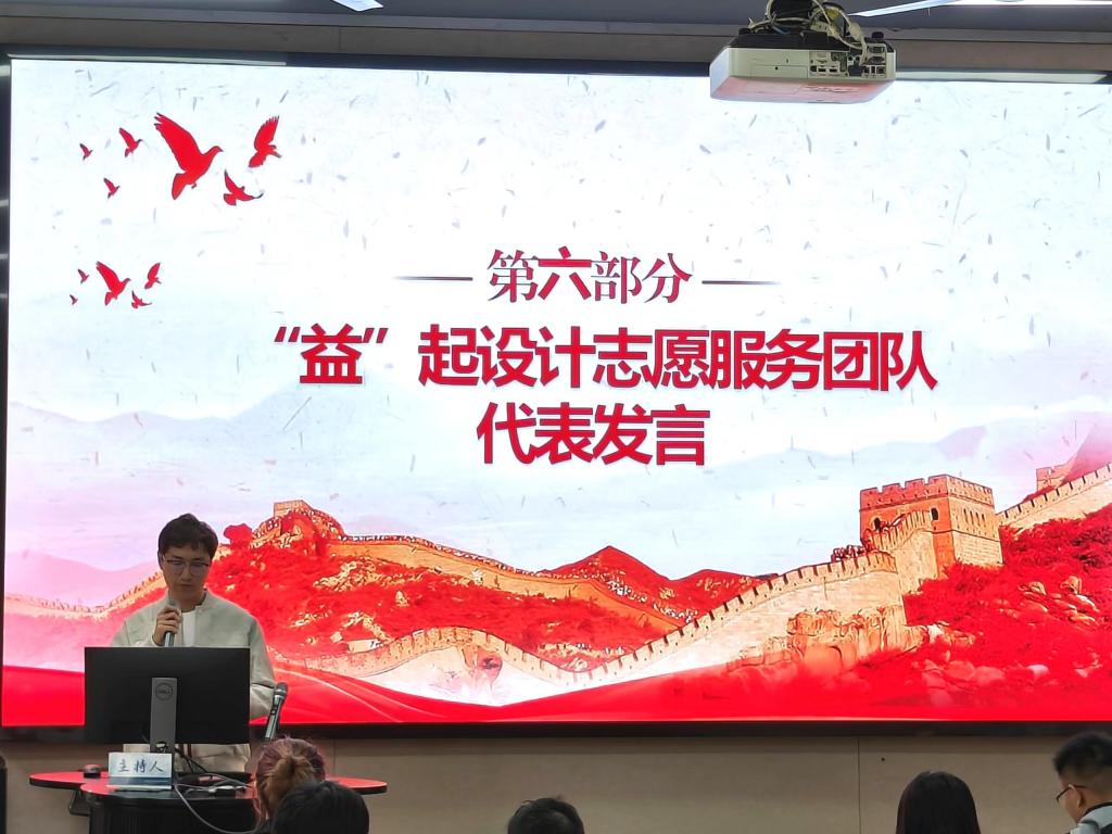 “益”起设计团队万翔代表优秀志愿服务团队进行事迹分享