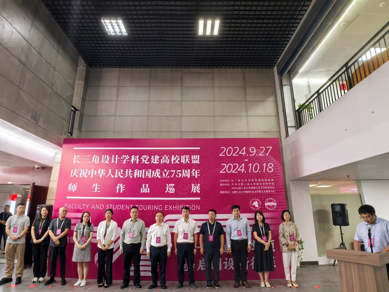 王维青作为长三角设计学科党建高校联盟单位代表致辞,他指出美育是党的教育方针的重要组成部分,是落实立德树人根本任务的重要途径。本次师生作品巡展聚力推进党建加美育特色,将弘扬社会主义先进文化融入到自己的创作中,坚持中华文化立场和高标准的历史追求,充分展示出长三角高校设计学科教学的实践成果和人才培养质量。他呼吁长三角设计学科党建高校联盟以庆祝建国七十五周年为契机,高举精神之气,以精神之柱,坚持为党育人、为国育才,大力培养富有家国情怀、世界视野、创新精神、担当民族复兴大任的新时代设计英才。真正让设计服务国计民生、引领时代精神,为实现中华民族伟大复兴贡献更多的设计智慧和设计力量。