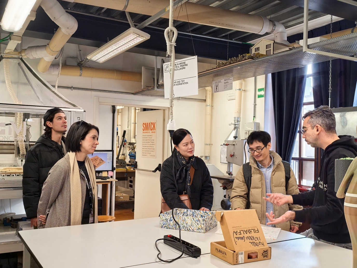 国际办公室主任Anne Schoonbrodt等就联合科研合作、学生交流互访、联合课程合作等多个方面进行了深入的沟通交流,并访问了米兰理工大学DESIS LAB和 LENS LAB等。