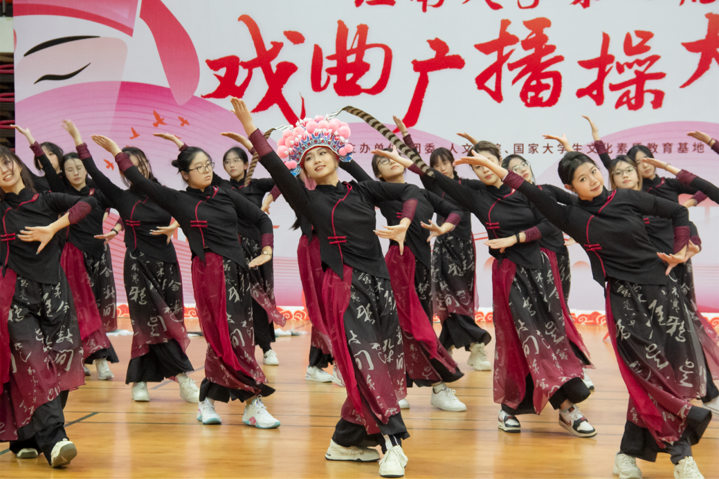 第七届戏曲广播操大赛在校体育馆举行,樱花漫画