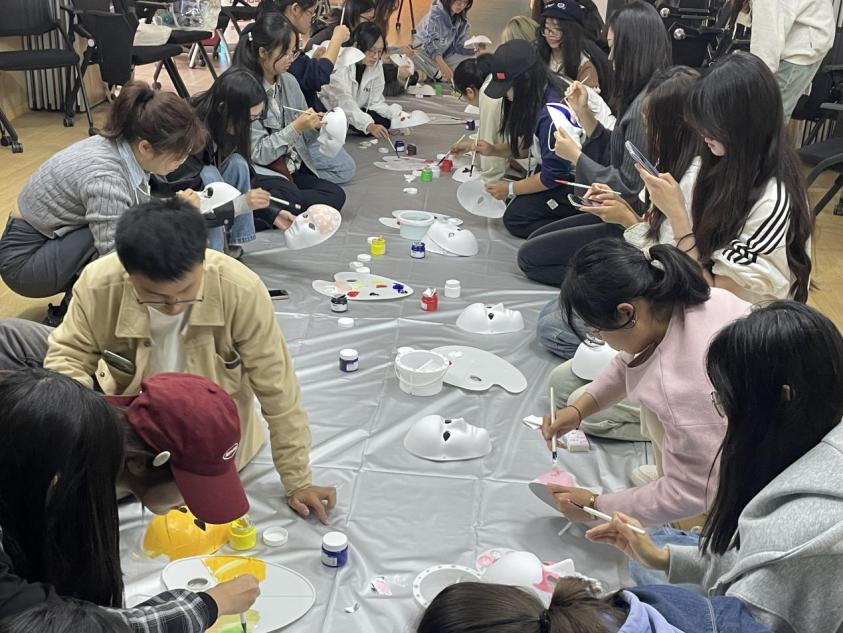 本次心理沙龙活动围绕“艺术表达”展开,分为心理绘画体验、情景剧体验、互动体验、手工与创作体验四个主要环节。活动伊始,带教老师引导同学们进行了绘画体验——《波浪线添加画》。波浪线作为情绪状态的象征,帮助同学们认清自己的情绪状态,为情绪管理打下基础。同学们在创作中学会直面内心波动,并逐步掌握情绪管理的方法。接着,在情景剧《听,情绪在低语》中,让同学们分组进行情境演练和讨论,倾听情绪背后隐藏的需求。通过角色扮演和深入的情感交流,同学们更加敏锐地识别情绪背后的多样化需求,提升了情感共鸣和解决问题的能力。互动体验《情绪面具涂鸦》成为活动的高潮环节。在舒缓的音乐背景下,同学们以绘画为媒介,以面具为载体,用画笔在面具上自由创作,通过艺术语言探索内心深处的真实感受。每一个面具都是一段内心的独白,也承载了学生们对自我情绪的感悟与表达。活动渐入尾声,同学们在手工和创作中舒展内心、解压放松。绘画完成后,同学们展示各自的作品,并分享创作过程中的心得体会。这一过程让他们在彼此的作品中找到共鸣,体验到情绪释放后的轻松与满足。大家互相鼓励与支持,凝聚成了一股集体的力量,每个人都在这一过程中收获了自信与勇气,迈出了自我探索和成长的新步伐。