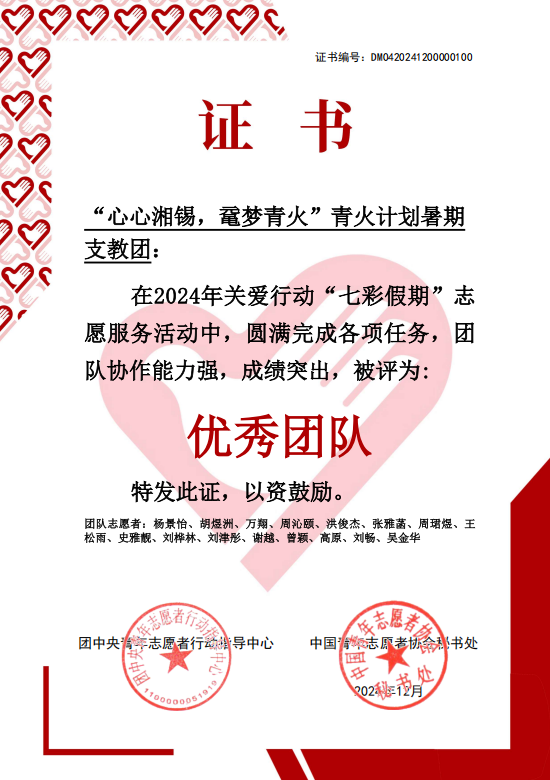 入选团中央2024年关爱行动“七彩假期”志愿服务活动优秀团队
