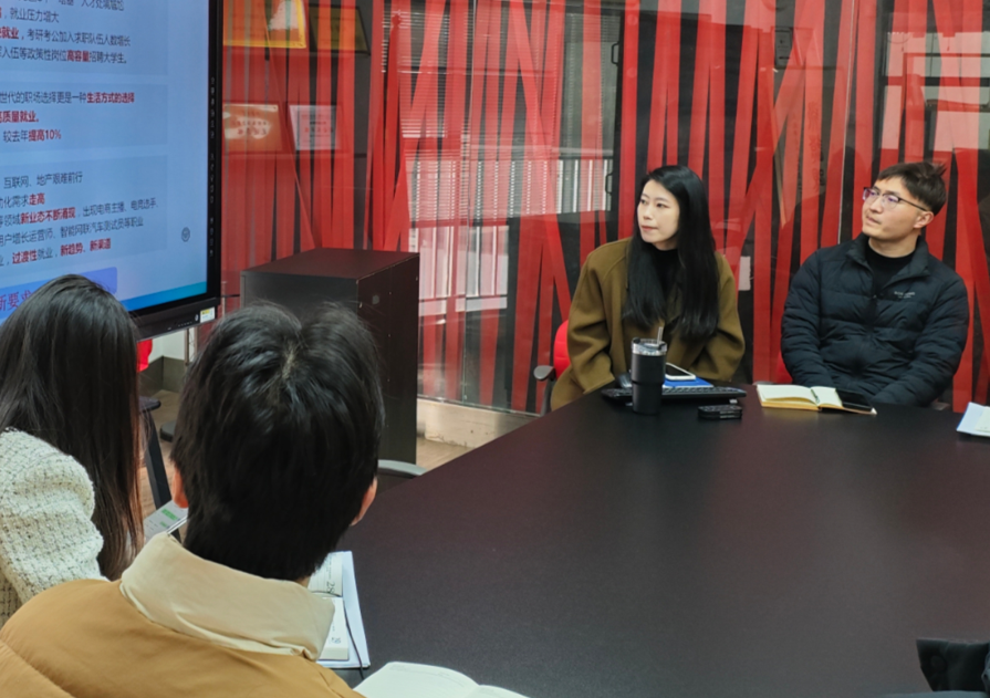 学生工作组于B311召开“赋能计划”系列就业专题研讨会,学院党委副书记兼副院长江琳娜及学院全体辅导员参加本次研讨会。