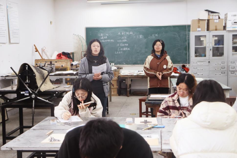 理论与演示过后,就到了同学们大展身手的自由创作环节。每张桌上整齐摆放着A4纸、复写纸、刻刀等工具 ,大家充分发挥自己的创意,以刀为笔,以板为媒,在90分钟的创作时间里尽情挥洒创作热情。每当同学们遇到困难时,胡萱琦学姐、曹数学长和王加桐学姐便及时上前指导,帮助同学们解决难题。