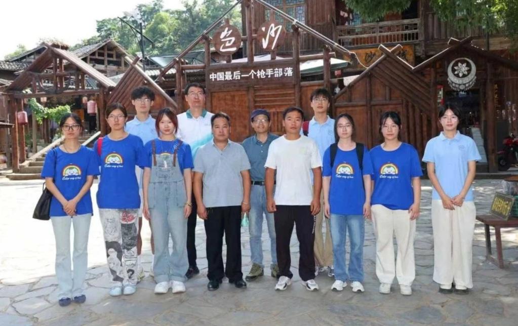 实践团跟随书记和管理人员,进入了“中国最后一个枪手部落”岜沙苗寨。实践团用双脚亲自丈量了这里的吊脚楼,见证了古老火枪的使用,还看到了左衽右开圆筒扣黑色高腰衣、大裤管的青布裤等传统服饰。岜沙苗族至今保留着古老的装束(男子发髻、配腰刀火枪)和独特习俗。在远离喧嚣的岜沙苗寨,勇敢坚毅的岜沙寨民的枪管里仍藏着对家园的守护,服饰系着对传统的坚守。