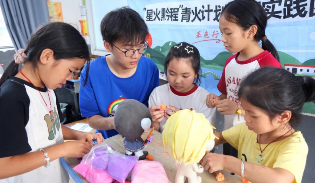 实践团与孩子制作卡通公仔
