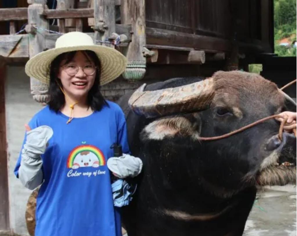 实践团深入侗寨阡陌,在鼓楼边触摸到侗寨的斗牛相思文化。在热情的村民介绍下,实践团成员与斗牛一同合影,了解到侗族斗牛不同于西班牙斗牛,是牛与牛之间的角力,侗家斗牛多在节日或农闲举行,选用精心饲养的水牛或“碰牛”。斗牛文化不重输赢,重在给侗家各寨提供互通有无的渠道,牛角上传递的是男女间的相思,牛背上翻过寨与寨的山头,它不仅是娱乐,更承载着凝聚村寨、祈求吉祥的文化内涵。